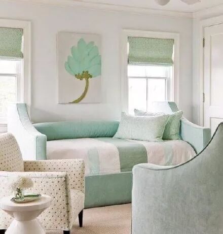 如果有一种颜色可以代表初夏,大概就是薄荷绿,薄荷绿色的家居风格很适合营造梦幻、小资的情调,北欧、简美、简欧风格的设计会用到薄荷绿,会营造休闲、清新的家居氛围。